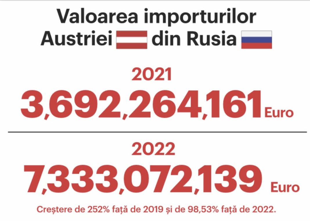 În aceste condiții, practic, Austria și-a dublat cifra de schimburi economice cu bunuri importate din Rusia de la începerea războiului.