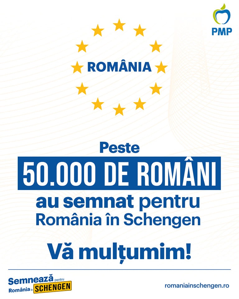În urma campaniei, am reușit să convingem peste 50.000 de români să semneze pe platforma www.romaniainschengen.ro. Mesajul nostru ferm va ajunge în Parlamentul European!