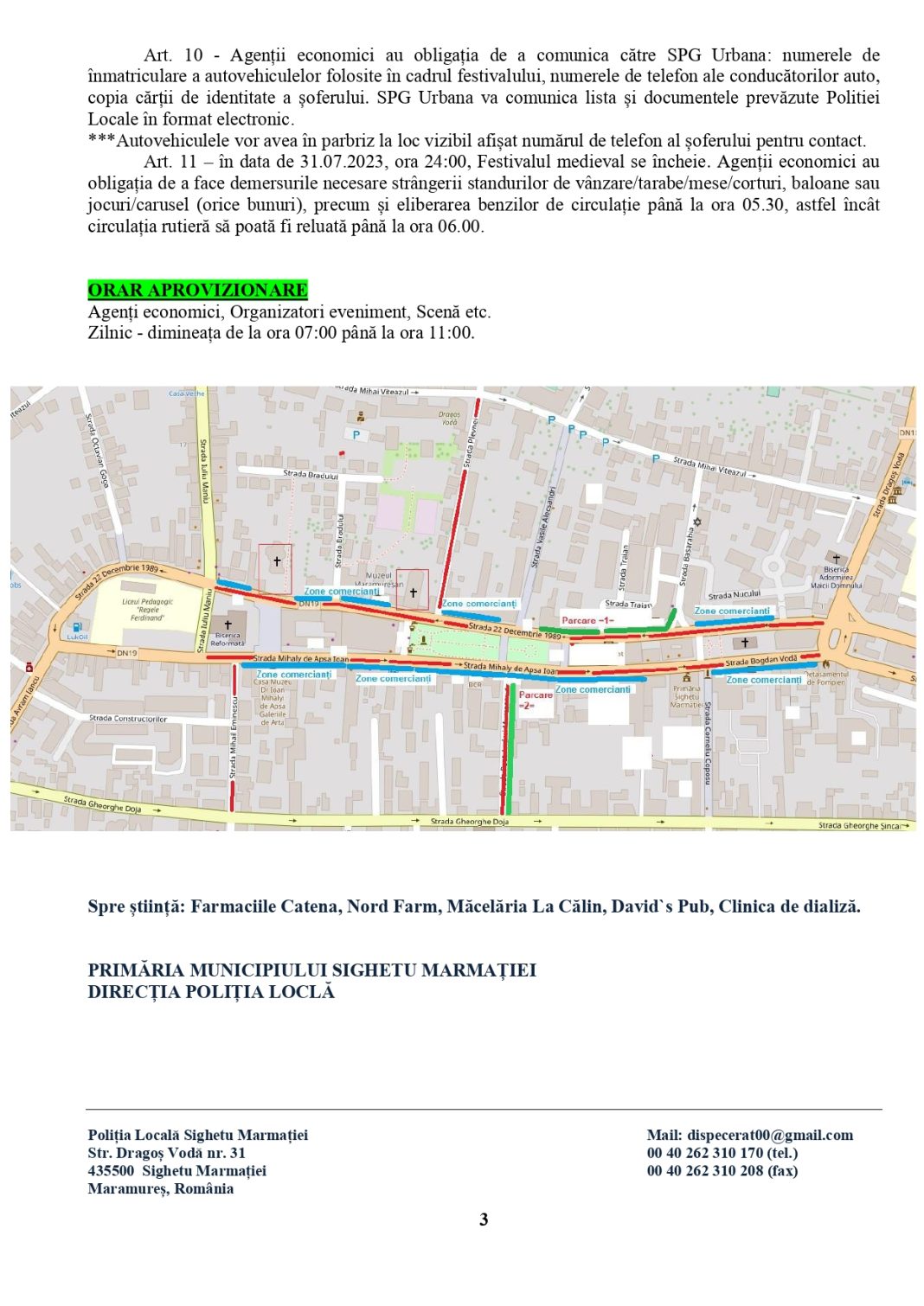 Pentru desfăşurarea Festivalului Medieval „Eternul Maramureş” ce va avea loc în zilele de 29 – 30 iulie 2023 în centrul municipiului Sighetu Marmației, Comisia de organizare și desfășurare a adunărilor publice a dispus o serie de măsuri privind restricționarea circulației rutiere.
